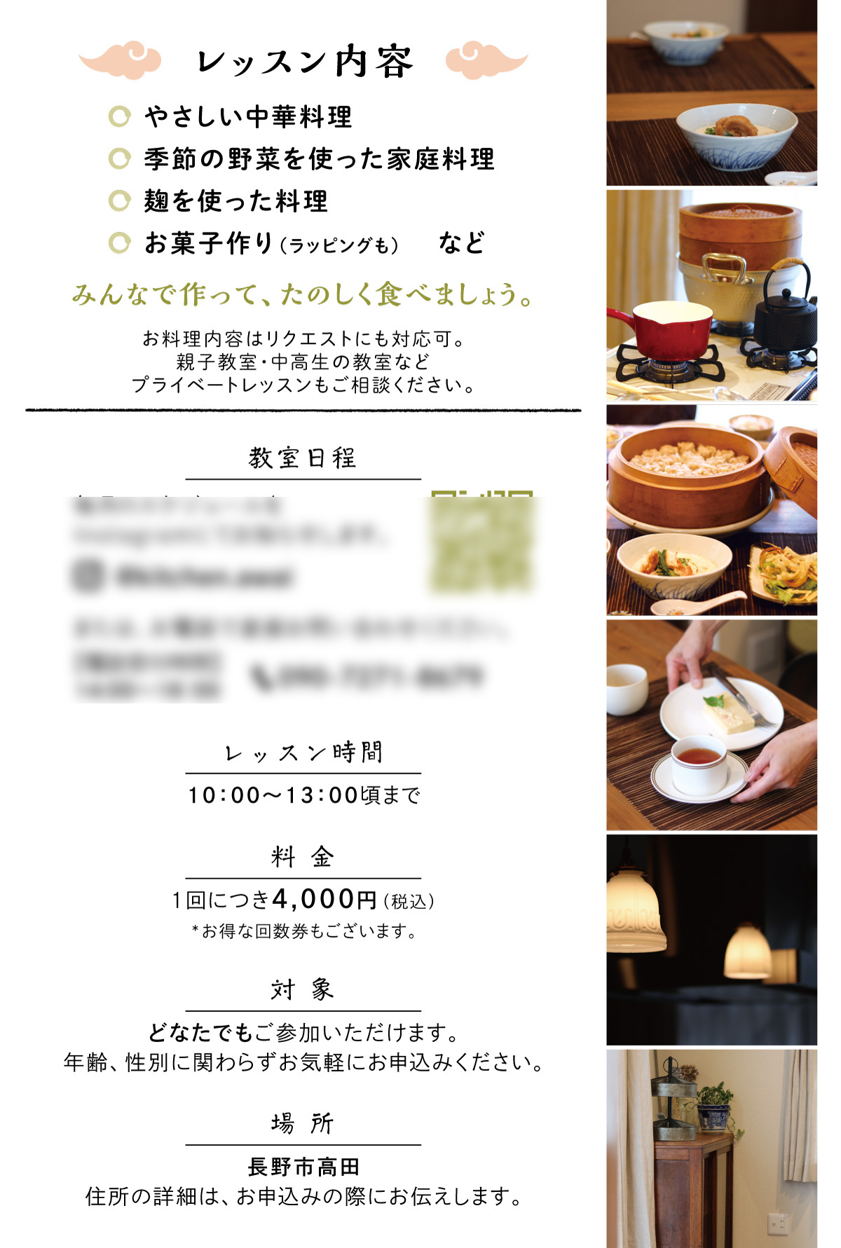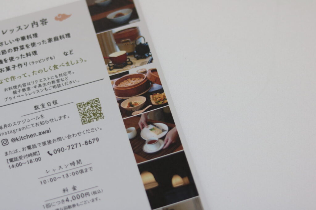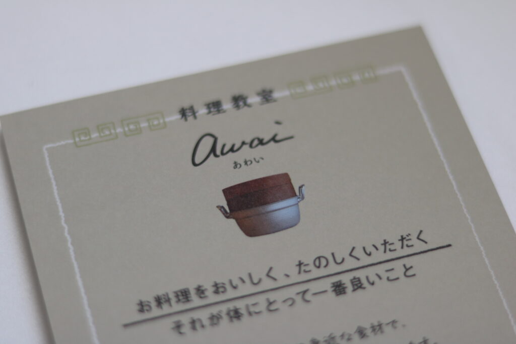 長野市内で新規開業の料理教室awai(あわい)様。2021年の夏に新規オープンした際に、ショップカードと名刺の制作のご依頼をいただきました。