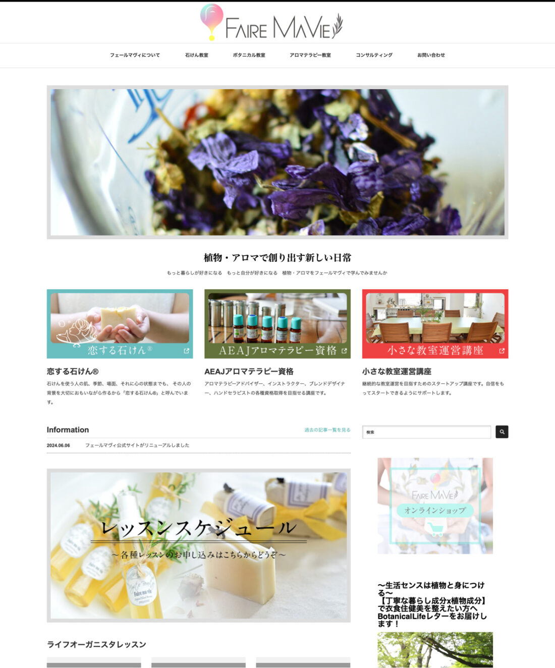 案件:WEBサイトデザインリニューアル/WordPress 仕様担当:アートディレクション/エディトリアル/グラフィックデザインご依頼主:アロマ・ハーブのアトリエ Faire ma vie(フェールマヴィ) 様URL:h […]